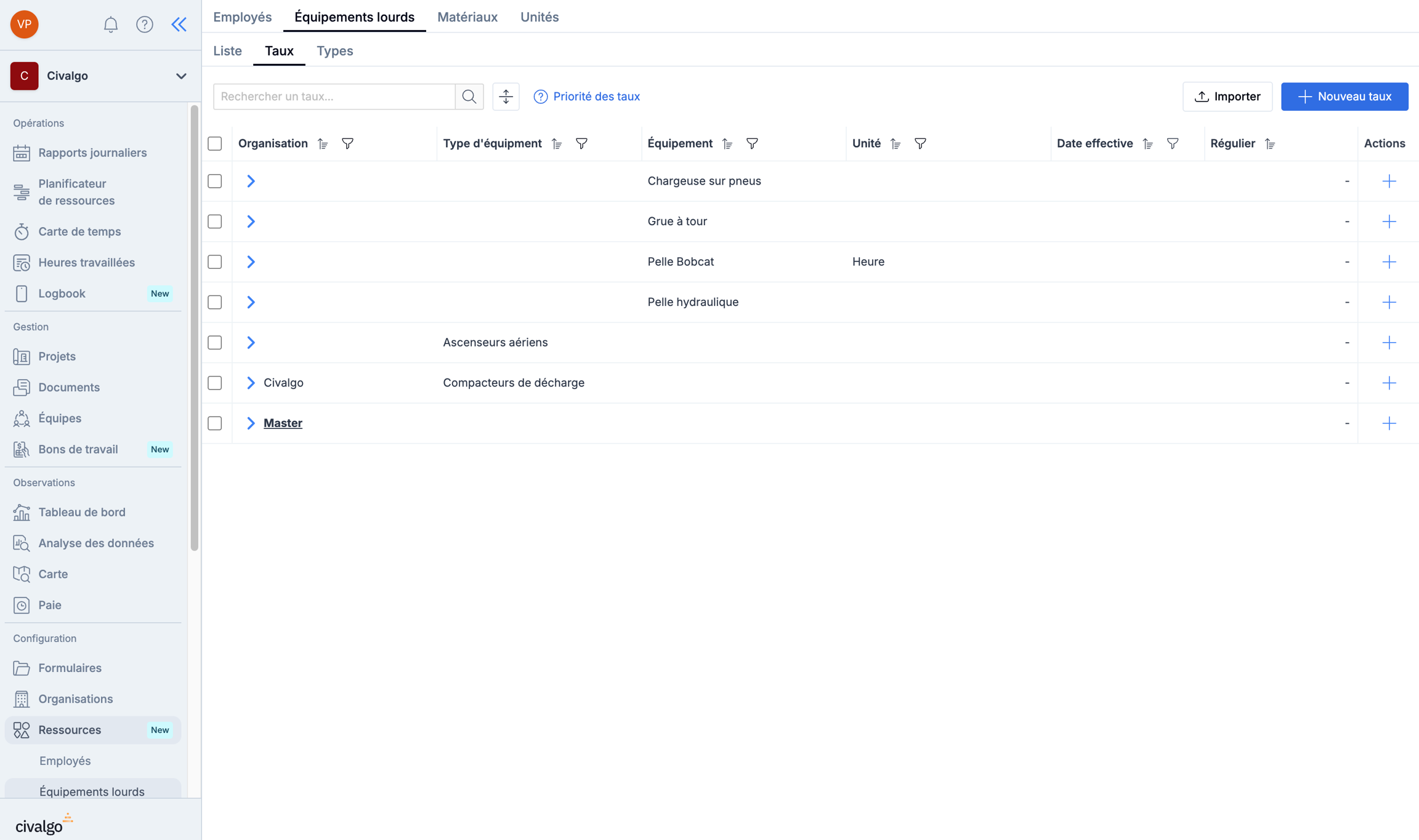Pour faciliter l’ajout de vos taux dans Civalgo, nous avons aussi ajouter la possibilité d’ajouter les taux à l’aide d’un import facile!