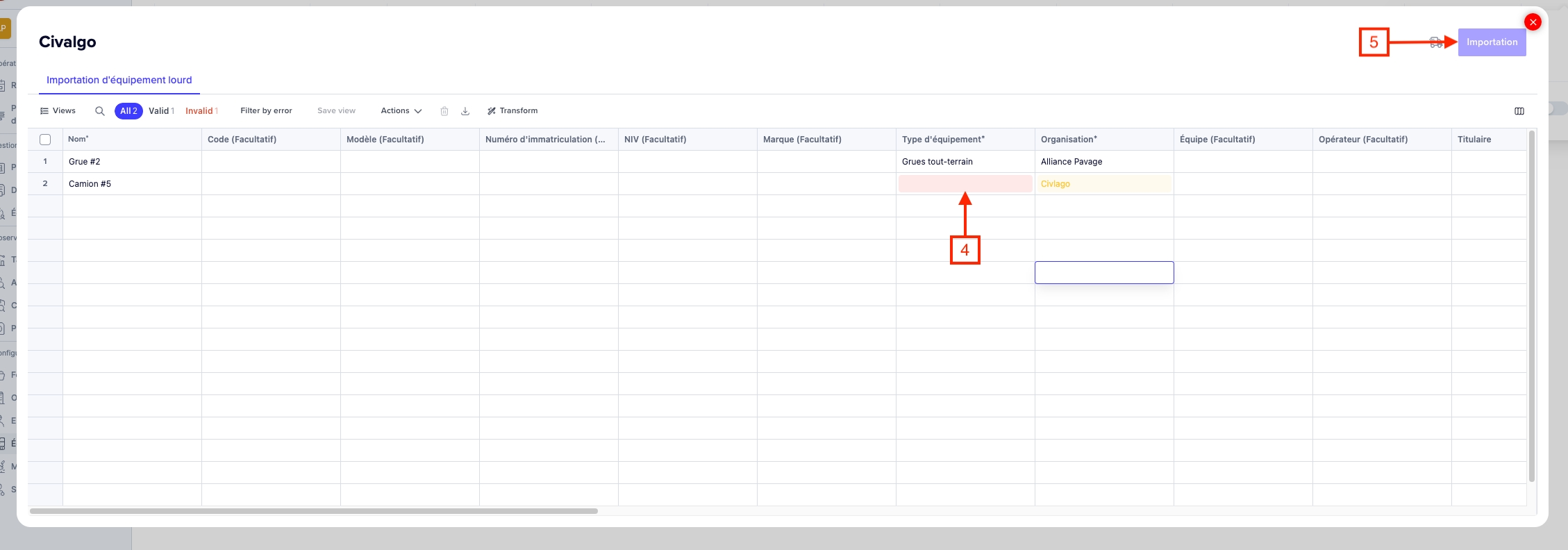 Create, import and manage your equipment in order to have a precise follow-up in Civalgo